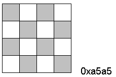 The amount of the pixel which is covered by a primitive. Every pixel is comprised of 16 subpixels. A dither mask like the checkered pattern shown below stores how many of the eight subpixels to cover. Used for anti-aliasing.