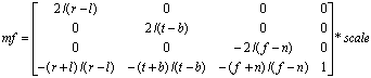 Returns an orthogonal projection matrix to mf for a parallel view of the orthogonal projection. When this function is called, the result is the creation of the following kind of projection matrix: