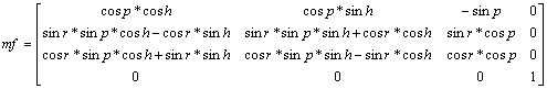Returns to mf a modeling matrix rotated according to (r, p, y). When this function is called, the result is the creation of the following kind of modeling matrix: