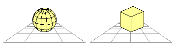 Rendering a model that has many planes takes a long time. Therefore, if you try to render a complex model in real-time, you may encounter problems. For real-time rendering, you have to pay close attention to the drawing rate. You need to decide how many surfaces (planes) your game can support. A model with few surfaces, like the cube on the right in the following illustration, requires a relatively "light" drawing process as compared to a model that has many surfaces, like the sphere on the left:
