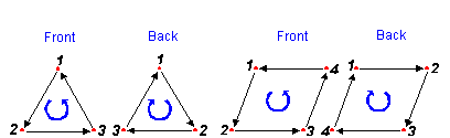 You can distinguish front and back for the computer by using a normal vector. This technique will be explained later. It is important for the computer to recognize the front from the back so that it can improve the drawing rate by not doing the drawing calculations for the back side planes.