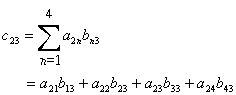 As you can see, the element of the second row and the third column is the product-sum of the second row of the matrix