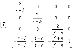 In this matrix the ratio of length to width is 1:1, sometimes making it a little hard to use for actual display on a screen. Therefore, you may need to add a different length to width ratio when preparing your projection matrix as shown here: