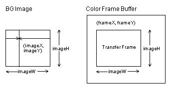 The size of the BG image is set by imageW, imageH. The starting address (address of the upper-left corner) is specified by imagePtr. In other words, the BG image can be regarded as texture data that starts at address imagePtr and is imageW wide and imageH tall.