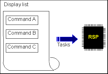 Think of the display list as an instruction booklet for the RSP and the RDP. Instead of "calling the function directly," you "specify what function to call" and the processor executes the work you want done.