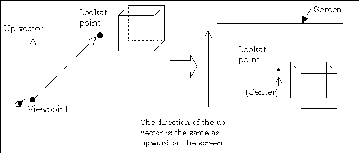 Figure 1-1 shows how you can use the guLookAt(F) function to specify the viewpoint and the point that acts as the center of the screen.