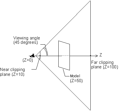 See Figure 1-2 about the viewing angle, aspect ratio and distance to the clipping plane.